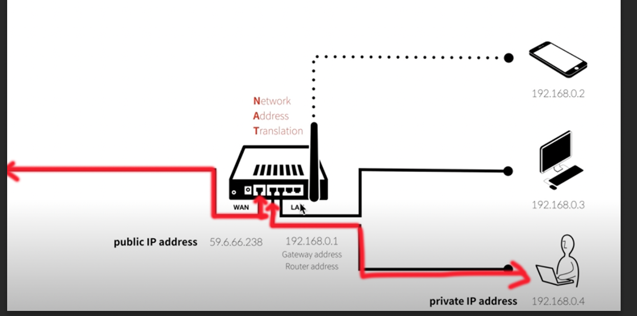 2. 접속을 위해 라우터로 신호를 보내고 라우터는 신호가 온 192.168.0.4를 기억한다.