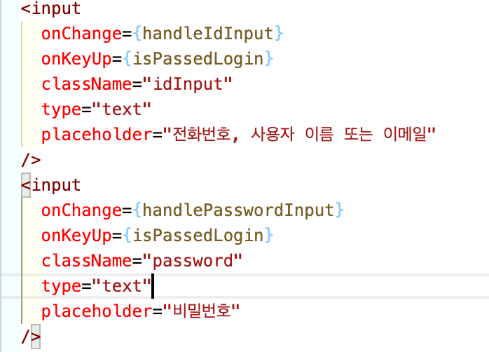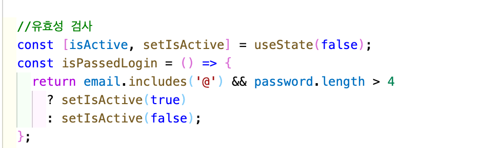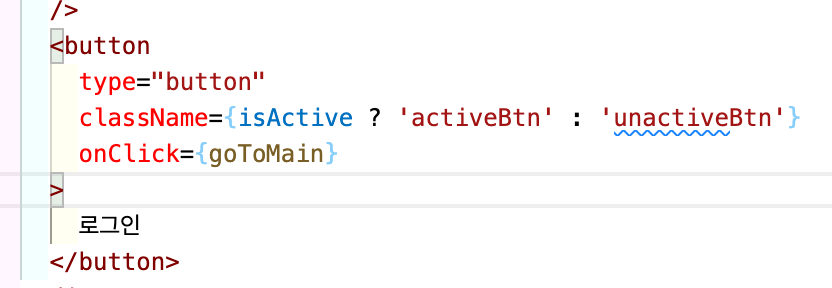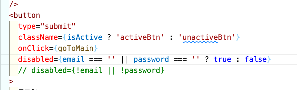 button className ={. } 에 삼항연산자를 적용해 위에 onKeyUp으로 적용한 ispassedLogin이벤트의 함수가 실행되며