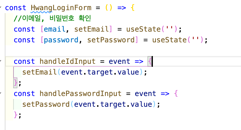 이메일과 패스워드를 저장할 state 선언