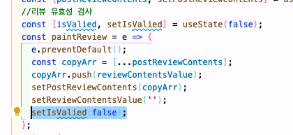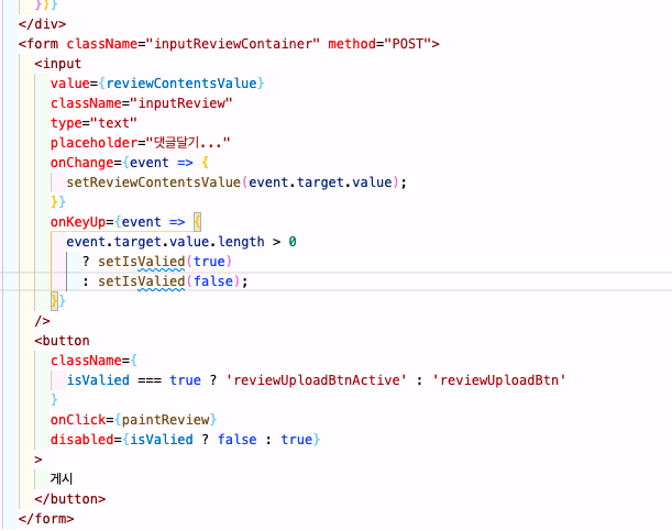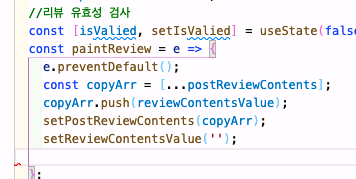 1. input값을 초기화는 진행해줬는데 발행 후 공백임에도 게시 버튼 불이 켜지는 에러가 있었다. false로 초기값을 주어 입력발생시 게시글 불도 꺼주었다.