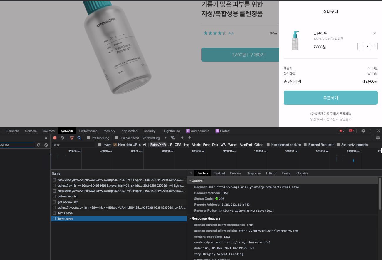 해석: HTTP 1.1 버전으로 응답하고 있는데, 프론트엔드에서 보낸 요청에 대해서 성공했기 때문에