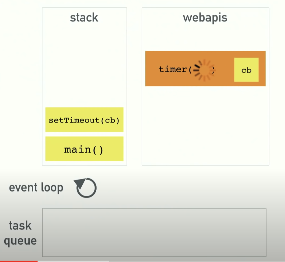 Web API는 콜백함수를 Callback Queue에 밀어 넣는다. Web API에 있는 콜백함수는 아무때나 stack에 밀어넣을 수가 없다.