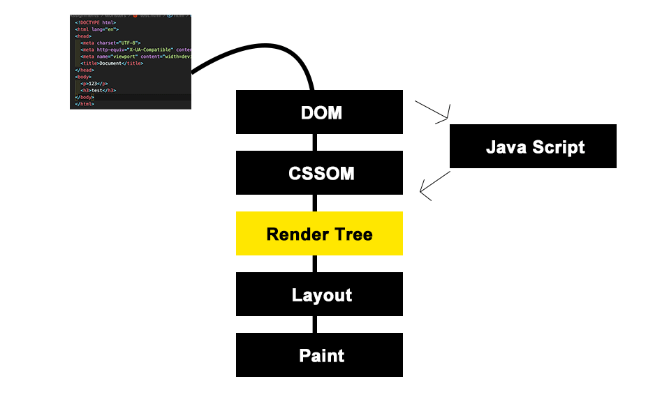 브라우저 뷰 포트에 보이는 것은 DOM과 CSSOM의 조합(렌더 트리)입니다.