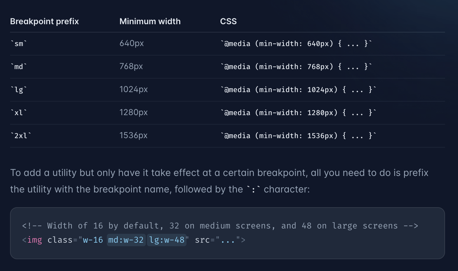 Documentation for the Tailwind CSS framework.
