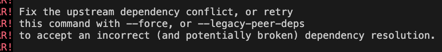 npm 설치 시 npm ERR! code ERESOLVE 발생.