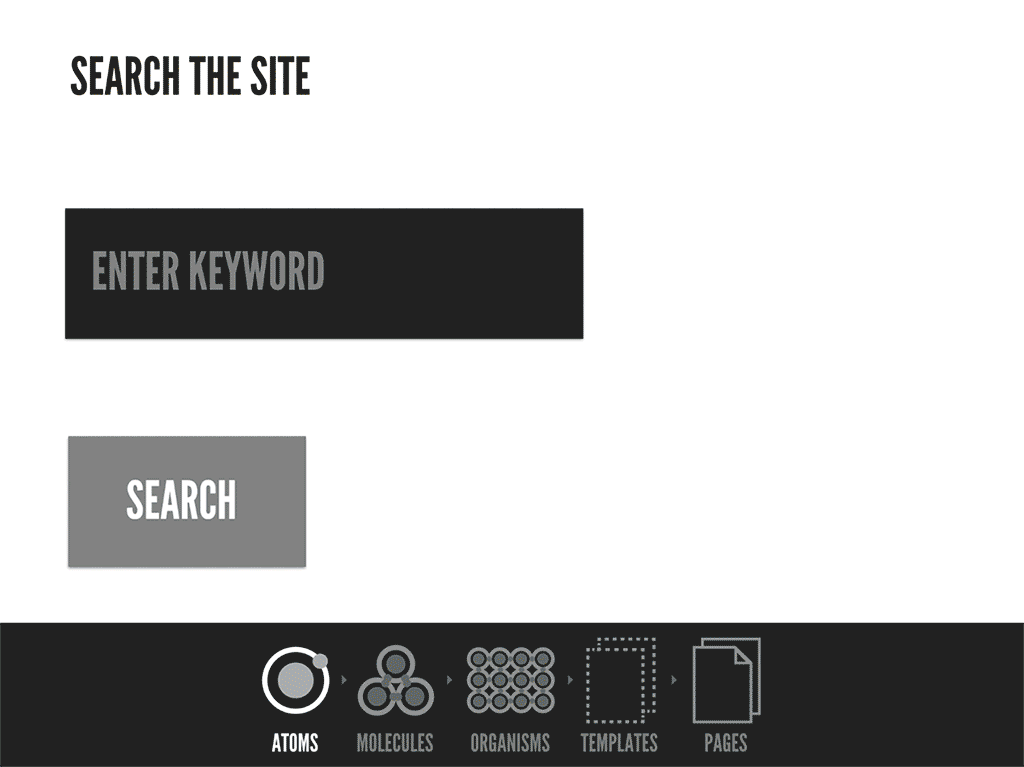 원자는 버튼, input 등과 같이 말그대로 더 이상 분해 될 수 없는 가장 작은 구성컴포넌트입니다. 분자는 2개 이상의 원자들의 집합이며 유기체는 원자와 분자의 복잡한 그룹입니다.