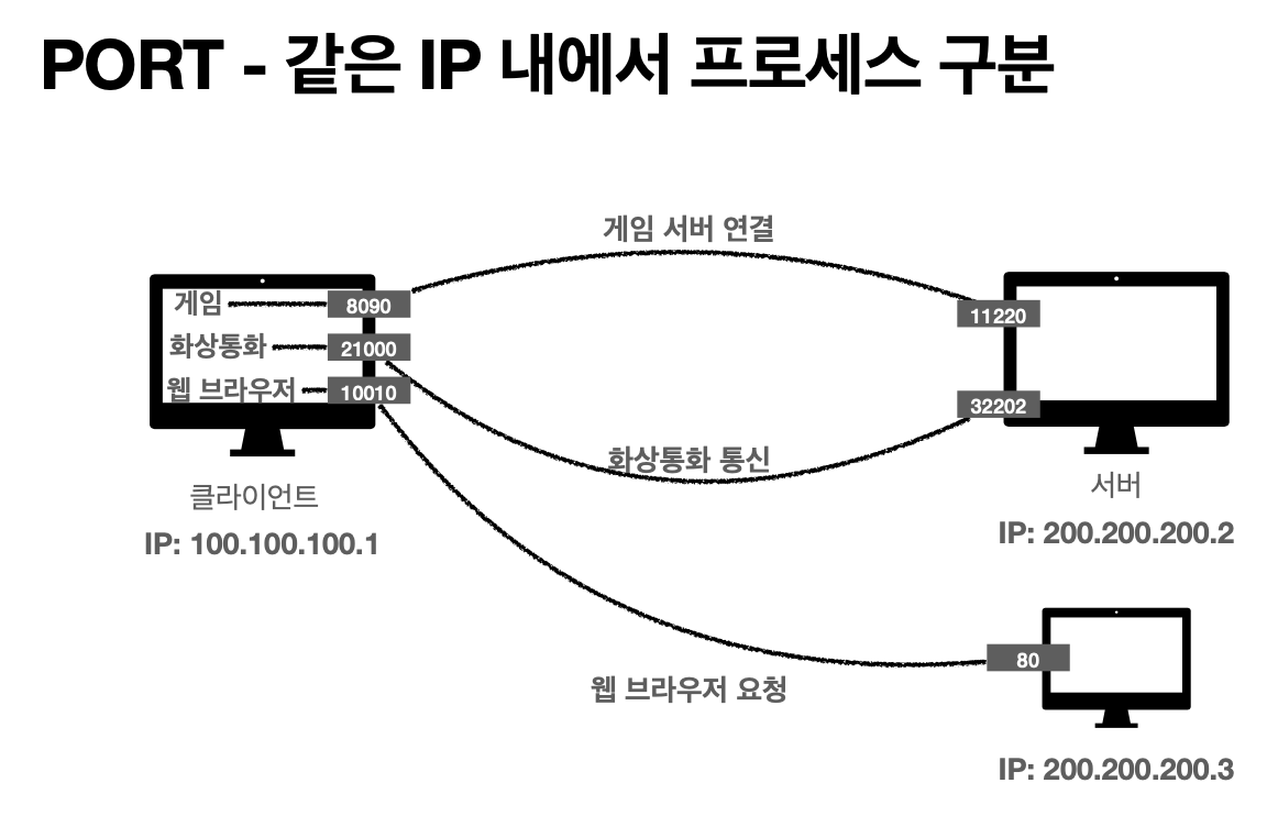 - 한 아파트(ip) 안에서 호수(PORT) 비유합니다.